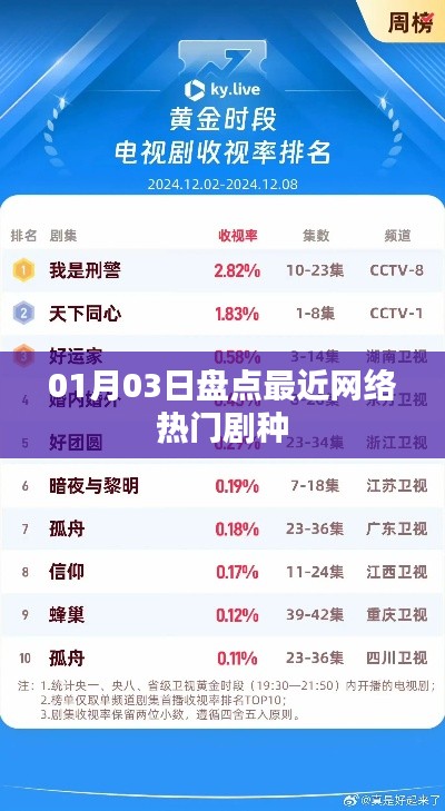 随着科技的进步和互联网的普及,网络剧已经成为人们休闲娱乐的重要选择,本文将对近期网络热门剧种进行盘点,介绍其特点、流行原因以及观众反响,带领读者了解当前网络剧市场的繁荣景象。