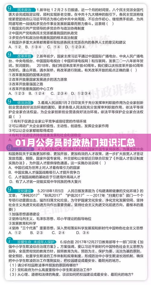 作为公务员,了解时政热点是必备素质,通过对01月公务员时政热门知识的汇总,希望能够帮助大家把握当前政治形势,提高政策理解和分析能力,在今后的工作中,我们还需要持续关注时政动态,不断提高自己的综合素质,为国家和人民的发展贡献自己的力量。