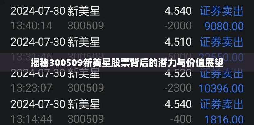 随着科技的发展和全球化的推进,股票市场日新月异,各种新兴企业崭露头角,在这其中,300509新美星股票以其独特的魅力和潜力引起了广大投资者的关注,本文将深入探讨这一股票的基本面、技术面以及市场情况,帮助投资者更好地了解并把握其投资机会。