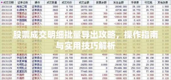 在股票投资领域,数据分析和信息挖掘对于投资者来说至关重要,股票成交明细作为最直接的交易数据,对于投资者理解市场动态、把握投资机会具有极高的参考价值,本文将详细介绍如何进行股票成交明细的批量导出,帮助投资者更高效地获取和分析数据。