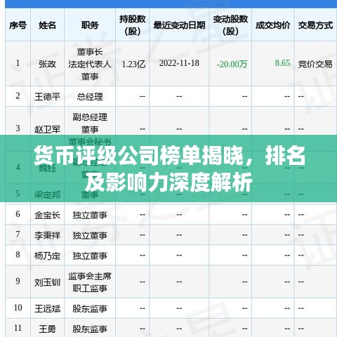 随着全球经济的不断发展和金融市场的日益繁荣,货币评级公司作为金融市场的重要一环,其影响力逐渐扩大,本文将探讨货币评级公司的排名及其在全球金融市场中的地位。