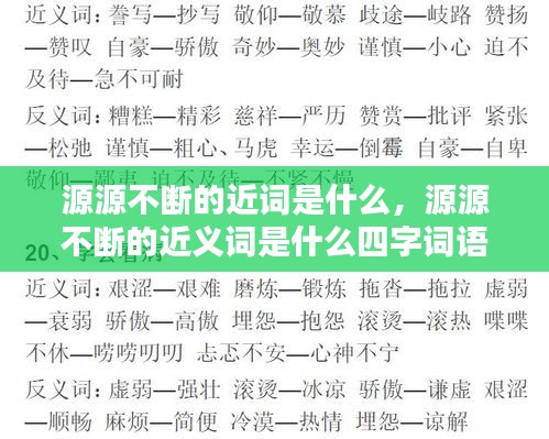为了更全面地理解“源源不断”的概念,我们可以寻找一些与之意思相近的词语。以下是一些常用的近义词: