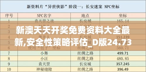 在选择彩票资料时,安全性是一个非常重要的考量因素,对于“新澳天天开奖”等彩票游戏,我们应选择官方渠道或信誉良好的第三方平台获取资料,对于任何所谓的“免费资料”或“预测软件”,都应保持警惕,以免遭受诈骗或泄露个人信息。