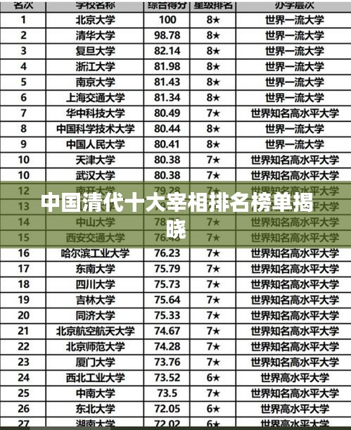 清代是中国历史上最后一个封建王朝,其政治体制中宰相一职极为重要,宰相作为皇帝的辅弼之臣,在朝廷中拥有极高的地位和权力,以下是清代宰相排名前十名,这些人物在清代历史上留下了深刻的印记。