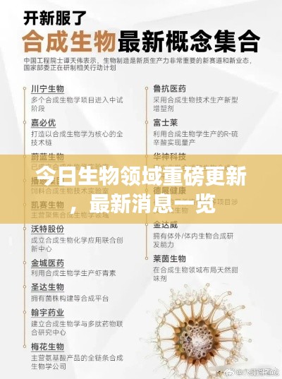 生物学领域的科研成果日新月异,为人类社会的发展与进步带来了无限动力,今日生物最新消息为我们展示了生物科学的巨大潜力与广阔前景,我们有理由相信,随着科技的不断进步与发展,生物学将为人类带来更多的惊喜与福祉。