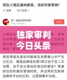 独家审判今日头条的起源可以追溯到今日头条的创立之初。作为一款基于大数据和算法推荐内容的新闻客户端,今日头条致力于为用户提供个性化的新闻阅读体验。在这个过程中,独家审判今日头条逐渐崭露头角。它通过深度挖掘新闻背后的故事,提供独家视角和分析,满足了广大读者对于深度报道的需求。