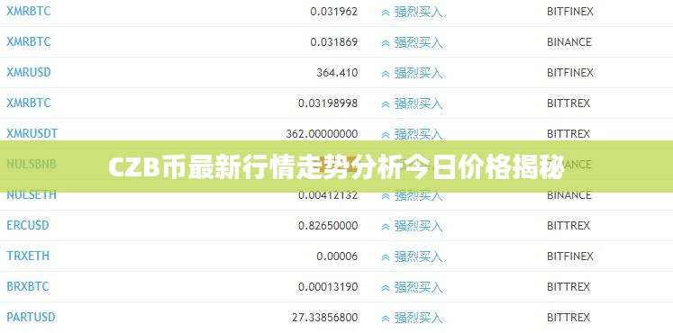 随着数字货币市场的日益成熟,各种加密货币的价格波动成为投资者关注的焦点,CZB币作为数字货币市场的一员,其价格动态也备受关注,本文将为您带来CZB币的最新价格行情分析。