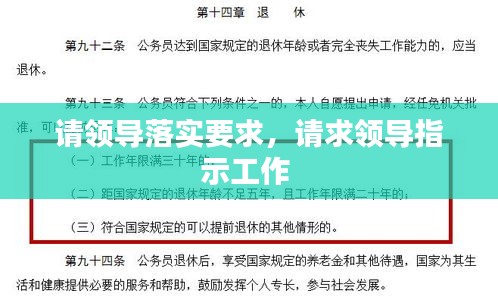 尊敬的领导,您好!在此,我代表广大员工向您提出一项重要的请求:请领导落实相关要求。随着社会的发展和企业的进步,各项规章制度和优化措施层出不穷。然而,在实际工作中,我们发现一些要求未能得到有效执行,影响了工作效率和员工积极性。为了更好地推动企业的发展,提高员工的工作满意度,特此提出以下请求,恳请领导予以重视和落实。
