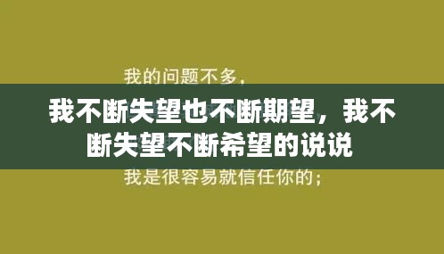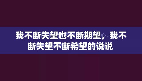 然而,失望并没有击垮我。在漫长的挣扎中,我渐渐明白,人生就是一场不断失望又不断期望的游戏。每一次的失望都是一次成长的机会,每一次的期望都是对未来的坚定信念。