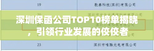 随着全球经济的不断发展和深化,保函业务在金融市场中的地位日益凸显,深圳,作为中国最具活力的经济城市之一,其保函行业发展尤为引人注目,本文将为您介绍深圳保函公司排名前十,这些公司在行业内树立了良好的口碑,并凭借卓越的服务和创新能力持续引领行业发展。