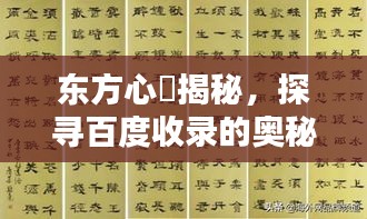 当我们打开百度搜索引擎,输入“东方心經”这一关键词时,便可以获取到大量关于东方心經的信息,其中包括东方心經的来源、内容、修炼方法等等,通过浏览这些网页,我们可以了解到东方心經在不同领域的运用,以及它对于人们心灵成长的积极作用。
