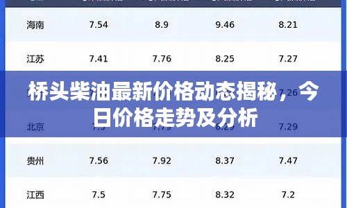 随着全球经济的复苏和各类工业活动的日益频繁,能源需求逐渐回暖,柴油价格成为市场关注的焦点之一,本文将重点关注桥头地区今日柴油的最新价格动态,并对其背后的因素进行分析。