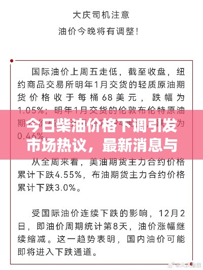 随着全球能源市场的动态变化,各类能源价格不断调整,柴油价格下调的消息引起了广泛关注,本文将对今日柴油价格下调的最新消息进行解读,并分析市场对此的反应。