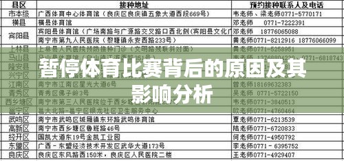 “暂停体育比赛”是一个复杂的问题,涉及到多个方面的因素和影响,我们需要从多个角度看待这个问题,寻找最佳的解决方案,以确保体育比赛的顺利进行。