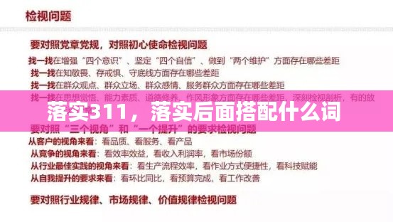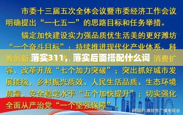 “落实311”是指在我国政府提出的一项重要工作部署,即“三年行动计划”,旨在通过三年时间,全面提升国家治理体系和治理能力现代化水平。这一行动计划涵盖了政治、经济、文化、社会、生态等多个领域,旨在解决我国发展中存在的突出问题,推动经济社会持续健康发展。