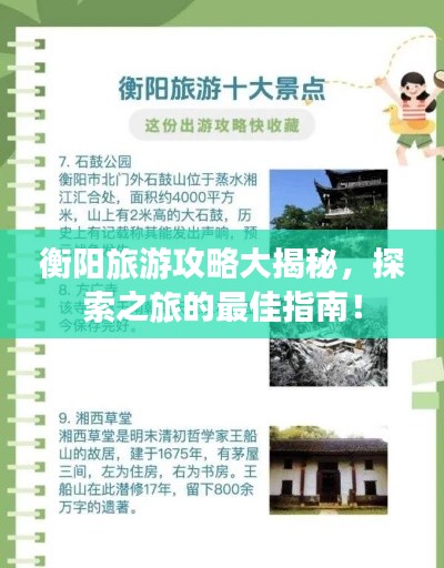 衡阳,湖南省的一个重要城市,拥有丰富的历史文化和美丽的自然风光,这里既有古老的建筑和寺庙,又有现代化的设施和新奇的旅游景点,如果你正在计划前往衡阳旅行,那么这篇攻略将为你提供一份详尽的出行指南。