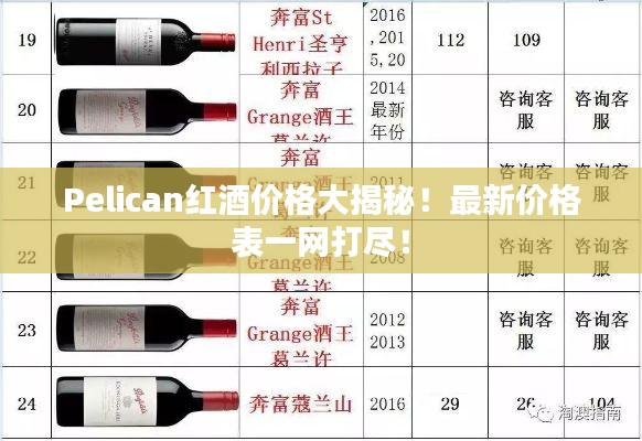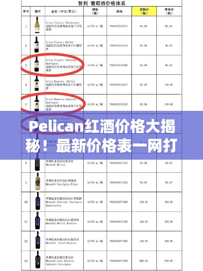 随着人们对高品质生活的追求,红酒逐渐成为社交场合不可或缺的一部分,在众多红酒品牌中,Pelican以其独特的口感和精湛的酿造工艺赢得了众多消费者的青睐,本文将为您呈现Pelican红酒的价格表,带您一探其丰富的产品线及价格体系。