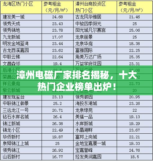 漳州,这个位于中国东南沿海的繁荣城市,近年来在工业领域取得了显著的发展,特别是在电磁领域,漳州的电磁厂家以其卓越的产品和服务赢得了市场的广泛认可,本文将为您介绍漳州电磁厂家排名前十名,带您了解这些在电磁领域领先的企业。