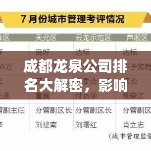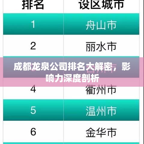 成都龙泉地区作为经济快速发展的区域之一,吸引了众多企业的入驻,本文将探讨成都龙泉地区的公司排名及其影响力,分析这些公司在不同领域的表现及对整个地区的经济贡献。