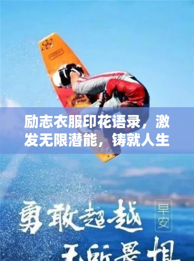 衣服印花励志语录是一种富有激励和启示性的时尚元素,它们以文字的形式,时刻提醒和激励我们追求梦想、奋发向前,通过选择合适的衣服印花励志语录,我们可以激发潜能、铸就辉煌人生,让我们在追求梦想的道路上,勇敢地迈出每一步,书写属于自己的辉煌篇章。