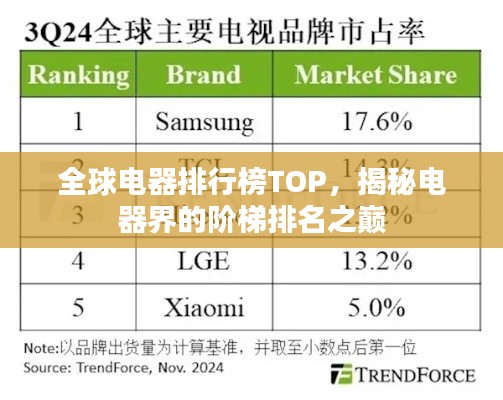 在全球电器市场中,各大品牌竞相发展,推陈出新,形成了独特的竞争格局,本文将为您揭晓世界电器阶梯排名,带您了解全球电器市场的前沿动态。