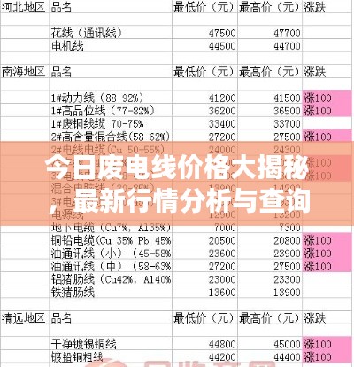 随着科技的快速发展和普及,电线电缆行业日益繁荣,废电线回收市场也日渐活跃,对于关注废电线价格变化的人来说,了解今日废电线的最新价格显得尤为重要,本文将围绕这一主题展开,探讨废电线的价格走势及相关因素。
