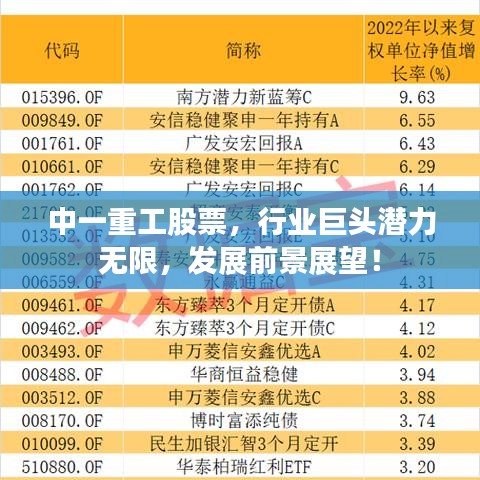 随着全球经济的稳步发展,各行各业的企业都在积极寻求突破与创新,在这样的大背景下,中一重工股票成为了众多投资者关注的焦点,作为一家具有深厚技术积累和广泛市场份额的行业巨头,中一重工在多个领域均展现出强大的竞争力与发展潜力,本文将深入探讨中一重工股票的投资价值及市场前景。