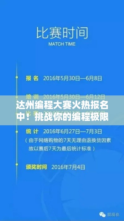 达州编程考试比赛是一个旨在推动达州地区编程事业发展的盛会,我们诚挚地邀请广大编程爱好者踊跃报名,展示自己的才华和实力,让我们在比赛中学习,在比赛中成长,共同为达州地区的科技发展贡献力量!