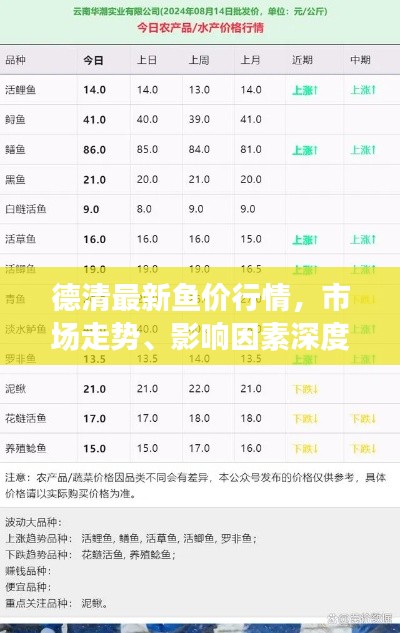 随着人们对食品质量与安全的关注度不断提高,鱼类的价格成为了消费者关注的焦点之一,德清地区作为浙江省的重要渔业产区,其鱼价动态更是备受关注,本文将围绕“德清今日鱼价查询最新”这一主题,介绍德清地区的鱼市行情,分析影响鱼价的主要因素,并展望未来的市场走势。