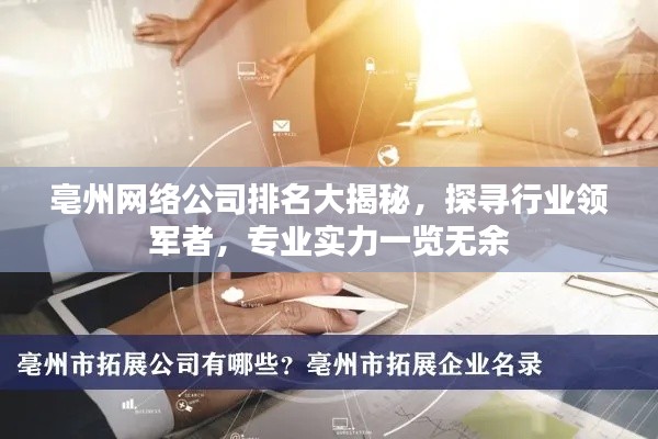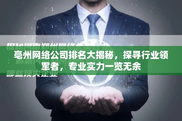 随着互联网技术的飞速发展,亳州的网络公司如雨后春笋般涌现,本文将为您揭示亳州专业网络公司的排名,带您了解行业内的领军者。