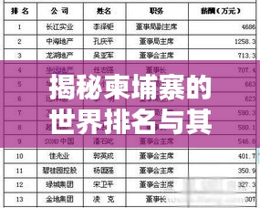 柬埔寨在世界上的排名受到多个因素的影响,包括经济、政治、文化、教育等,尽管在某些领域的排名并不高,但柬埔寨在全球舞台上的影响力不容忽视,随着国内改革的推进和全球合作的加强,柬埔寨的排名有望进一步提升。