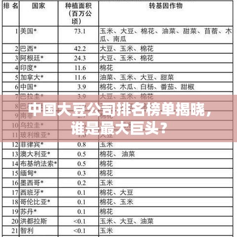 随着农业产业的不断发展和市场化程度的提高,大豆产业也在中国得到了长足的发展,在这个领域中,一些大豆公司凭借自身的实力和优势逐渐崭露头角,成为了行业的佼佼者,本文将介绍中国最大大豆公司的排名及相关情况。