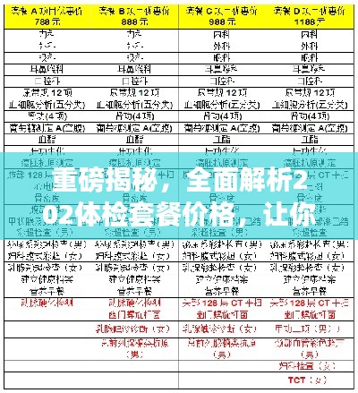 随着健康意识的提高,定期体检已成为人们关注自身健康的重要方式,不同的体检套餐能满足不同人群的需求,而了解体检套餐的价格则是做出选择的关键,本文将为您详细介绍关于“202体检套餐价格”的相关信息。