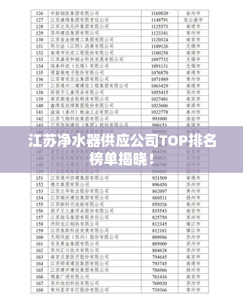 水是生命之源,随着人们对饮用水质量的要求越来越高,净水器市场逐渐繁荣,江苏省作为我国的经济大省,净水器供应公司众多,各具特色,本文将对江苏净水器供应公司进行排名,以便消费者更好地了解市场,做出明智的选择。