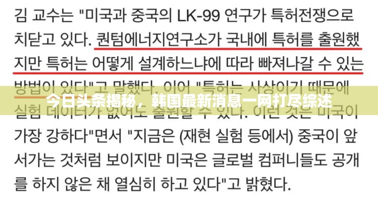 随着全球化的推进,各国之间的信息交流日益频繁,今日头条作为一款国内领先的新闻资讯平台,时刻关注着世界各地的动态,包括韩国的最新消息,本文将对今日韩国的一些重要新闻进行梳理。