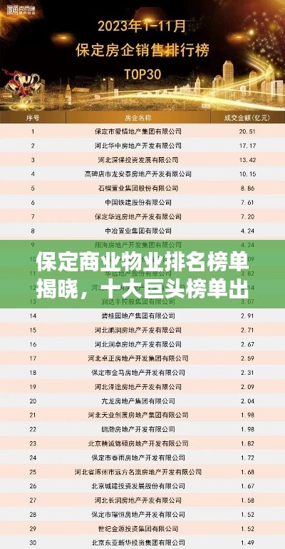 转载请注明来自河南双峰网袋厂,本文标题:《保定商业物业排名榜单揭晓,十大巨头榜单出炉!》