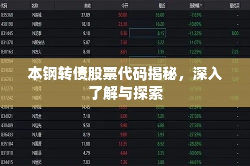 要参与本钢转债的投资交易,了解其股票代码是必不可少的一步,本钢转债的股票代码是XXXX(注:此处为示例,非真实代码),投资者可以通过各大证券交易所或金融资讯网站查询本钢转债的实时行情、交易数据等信息,以便做出更明智的投资决策。