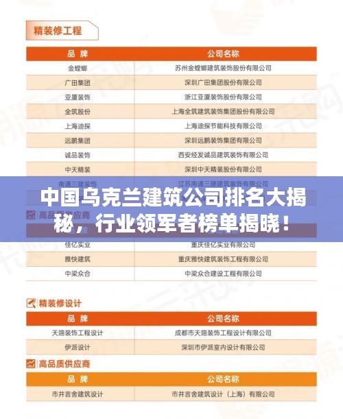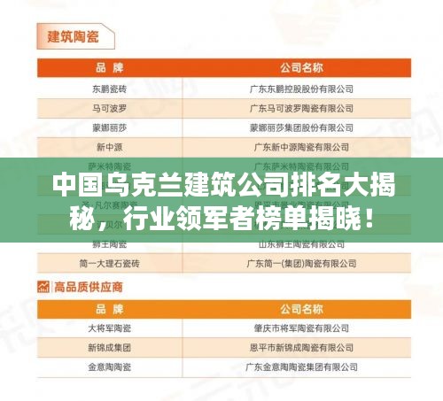 随着中国与乌克兰在经贸领域的不断深化合作,两国在建筑领域的合作也日趋紧密,不少中国建筑企业凭借先进的技术和丰富的经验,在乌克兰市场上取得了骄人的业绩,本文将为您揭晓中国乌克兰建筑公司的排名,带您了解这些企业在国际舞台上的表现。