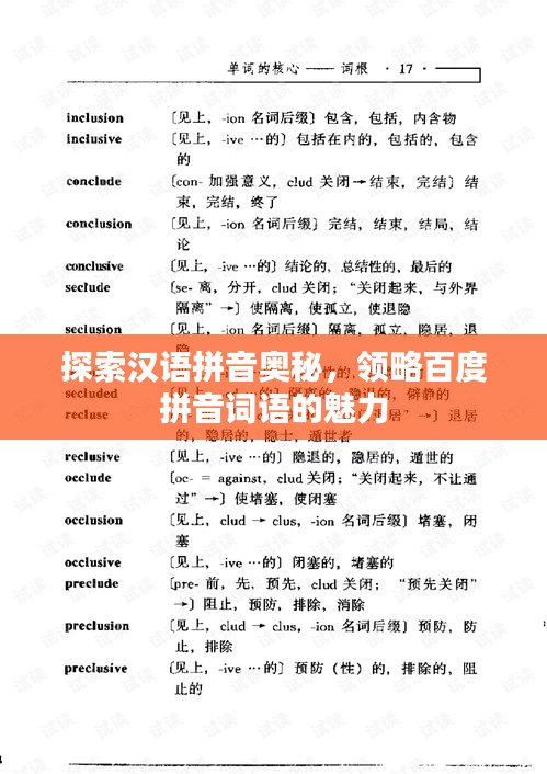 汉语拼音是我们学习和使用普通话的重要工具,借助百度,我们可以轻松地查找和理解拼音词语,提高我们的汉语水平,我们也可以借此机会感受汉语的韵味,了解中华文化的魅力。