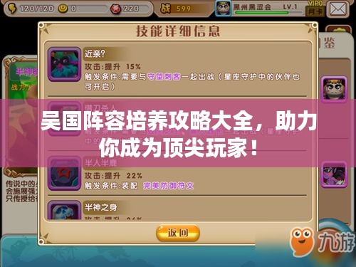 吴国阵容在各类游戏中都有着举足轻重的地位,其独特的英雄组合和技能搭配,使得吴国阵容在游戏中具有极高的战斗力,本文将为大家带来最新的吴国阵容培养攻略,帮助大家更好地了解吴国阵容的搭配、英雄培养及技能提升等方面,从而在游戏中取得更好的成绩。