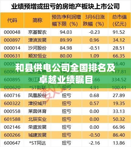 电力是现代社会运转的基石,供电公司的运营效率和服务质量直接关系到地区经济的发展和人民生活的质量,在这其中,和县供电公司凭借其出色的业绩和服务,在全国供电公司中脱颖而出,荣登排名前十的行列,本文将对和县供电公司的排名及其背后的努力进行详细介绍。