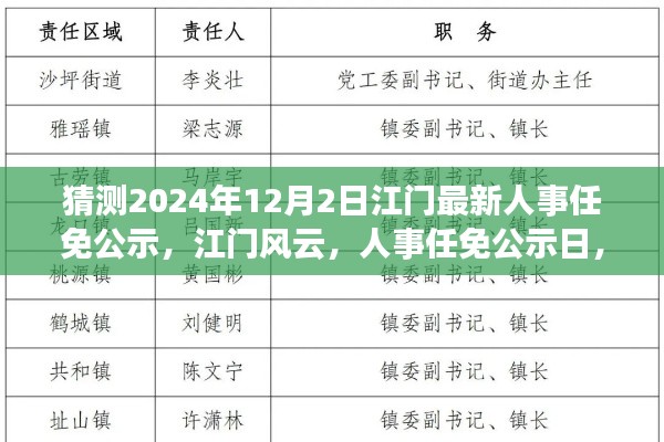 转载请注明来自河南双峰网袋厂,本文标题:《江门人事风云,最新任免公示与友情相伴的温馨篇章(预测2024年12月2日)》