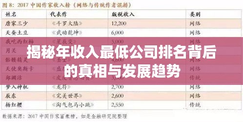 随着经济的发展和市场的竞争日益激烈,企业的生存状况越来越受到关注,本文将围绕“一年收入最低的公司排名”这一主题展开讨论,揭示背后的真相与趋势。