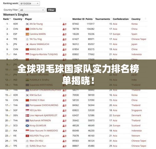 羽毛球作为世界范围内广受欢迎的体育项目,各国为了争夺荣誉和冠军,纷纷组建强大的羽毛球队,本文将为您介绍当前世界各国的羽毛球队排名。