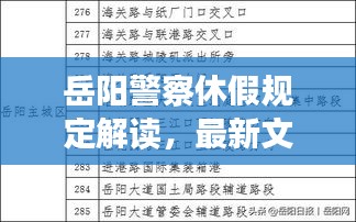 岳阳市警察休假规定的最新文件是一项重要举措,旨在关注警察的身心健康和休息权益,期待在各方共同努力下,这一规定能得到切实执行,为岳阳市的警察队伍创造更好的工作环境和条件。