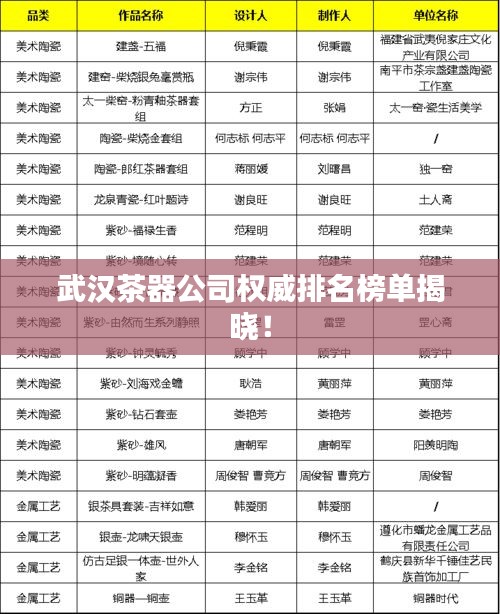 武汉,作为中国的历史文化名城,不仅拥有丰富的自然资源和繁荣的经济体系,同时也是茶文化的重要发源地之一,茶器作为茶文化的重要组成部分,在武汉有着广泛的市场需求,本文将探讨武汉茶器公司的排名,以期为消费者提供购买参考。
