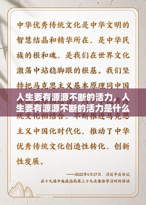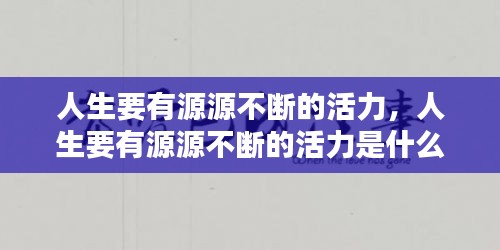 人生要有源源不断的活力,这是我们在面对生活挑战时的武器,也是我们实现梦想的基石。让我们从现在开始,关注自己的身体和心态,保持活力,勇往直前,迎接人生的每一个挑战。
