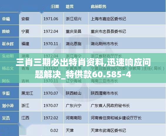 "三肖三期必出特肖资料"在问题解决中展现出了强大的功能和效率,这种资料系统的运用,不仅帮助用户迅速作出正确的决策,提升了业务处理的整体效率,而且为用户提供了便捷、高效的解决方案,随着信息技术的发展,这类资料系统将在各个领域中发挥更大的作用。