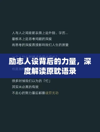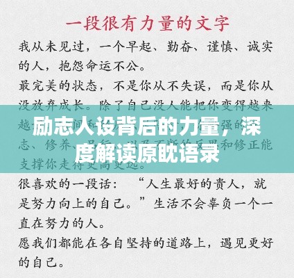 在原眈语录中,励志人设的塑造是其核心要素之一,这些励志人设,无论是成功者、奋斗者还是梦想家,都以他们的坚韧不拔、勇敢追求和不懈努力,成为我们心中的榜样,他们的人生故事,激励着我们追求梦想,超越自我。