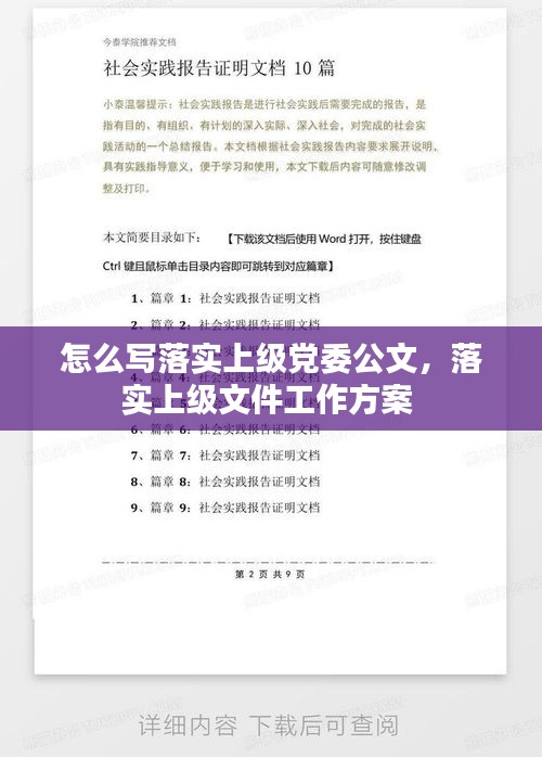 在撰写落实上级党委公文之前,首先需要充分理解公文的目的和背景。上级党委公文通常是为了传达重要指示、部署工作任务、明确工作要求或者解决特定问题。因此,作者应当仔细阅读公文,明确其核心内容,包括公文的主要目标、涉及的部门或单位、工作的时间节点等。